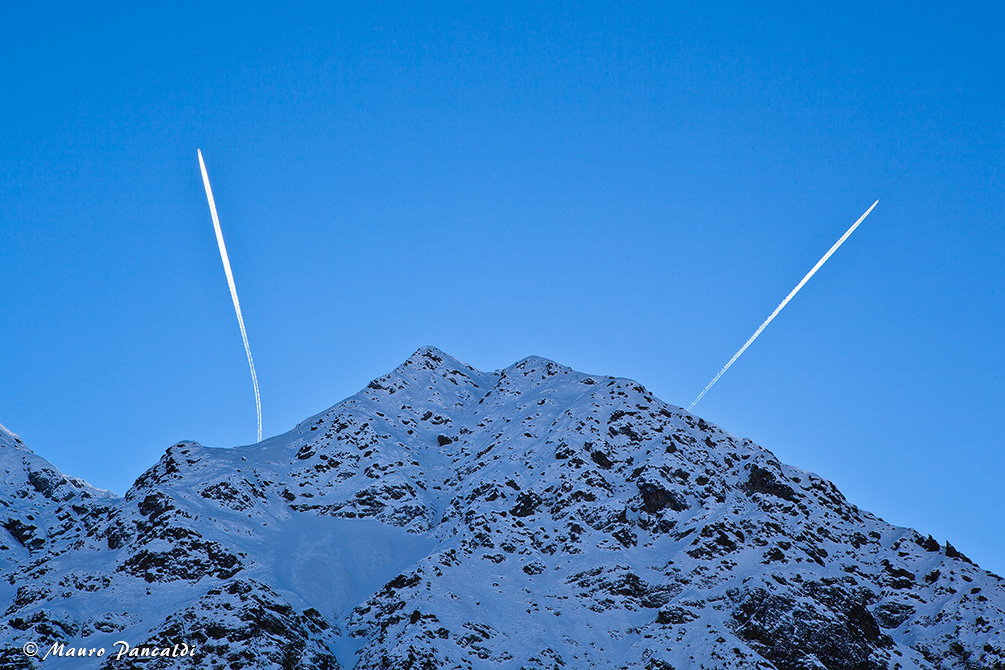 Scie nel cielo sopra Cima Nebbia in Alta Valle di Tramin.Scie nel cielo sopra Cima Nebbia in Alta Valle di Tramin.
