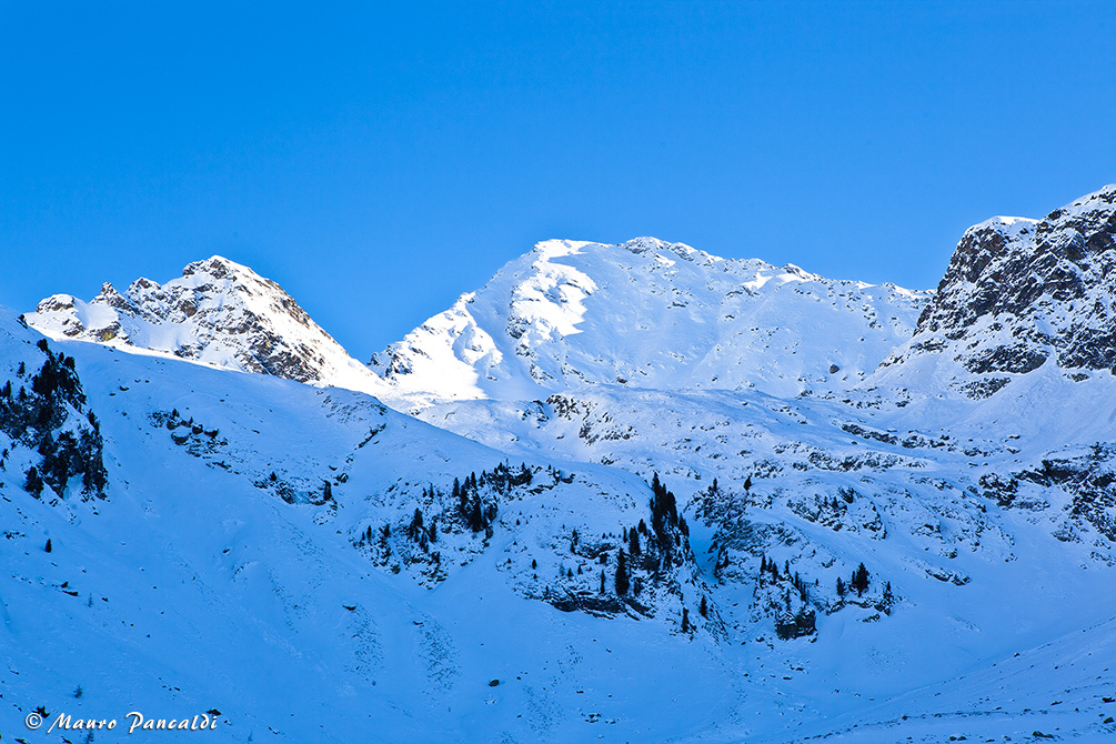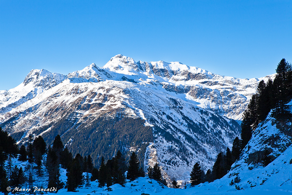 Le cime del Corno Bianco riprese dalla Valle di Tramin.Le cime del Corno Bianco riprese dalla Valle di Tramin.