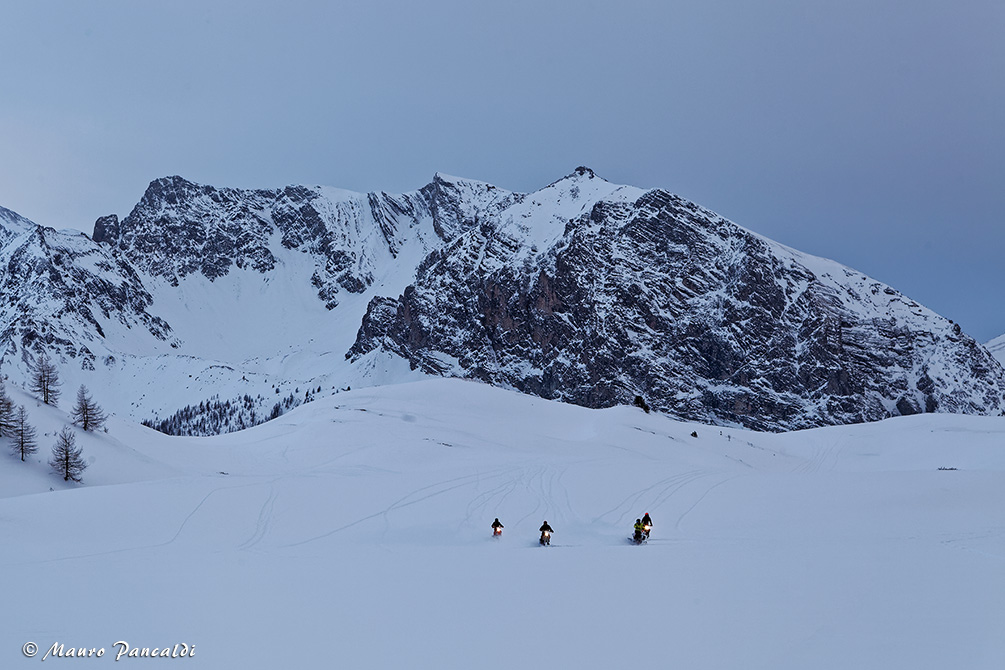 Motoslitte in arrivo da Col Bousson.Motoslitte in arrivo da Col Bousson.