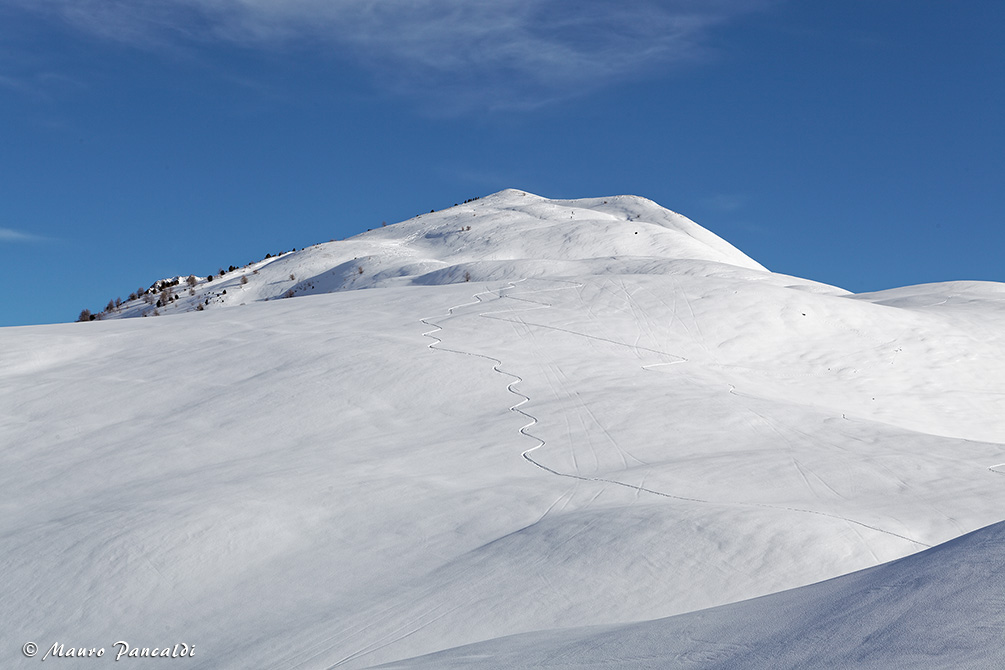 Come un solco d’aratro nella neve immacolata verso Col Bousson.Come un solco d’aratro nella neve immacolata verso Col Bousson.