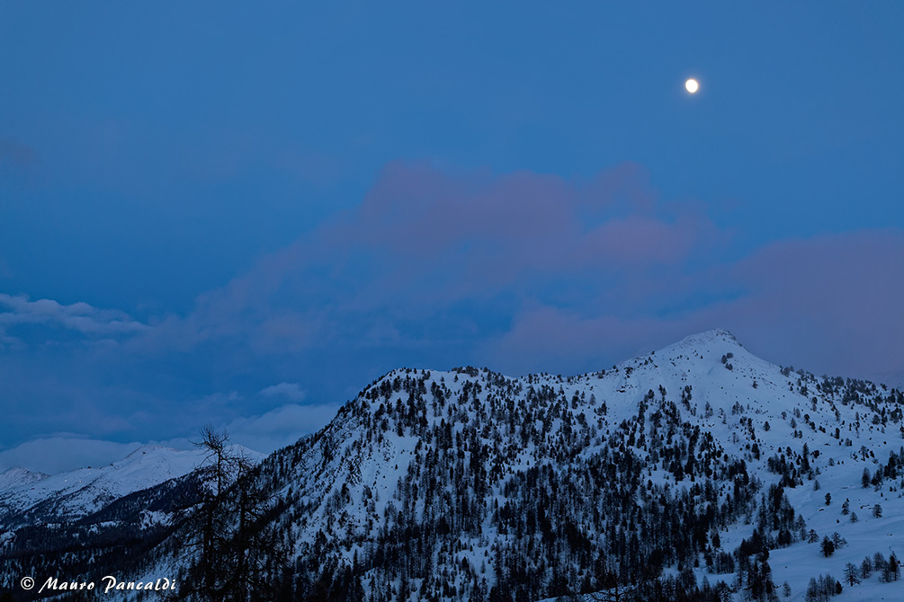 “Luci al Sestriere“ (Luna piena e il Sestriere dalla Capanna Mautino).“Luci al Sestriere“ (Luna piena e il Sestriere dalla Capanna Mautino).