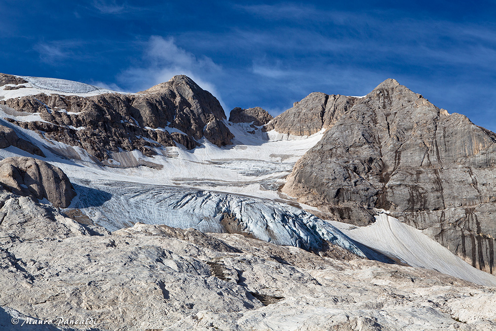 Il Ghiacciaio della Marmolada sopra Pian dei Fiacconi, in alto sulla sx abbiamo Punta Rocca mentre Punta Penia è quella quasi al centro.Il Ghiacciaio della Marmolada sopra Pian dei Fiacconi, in alto sulla sx abbiamo Punta Rocca mentre Punta Penia è quella quasi al centro.