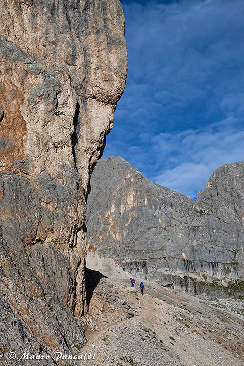 Sul sentiero per Forcella della Marmolada, di fronte a noi Roda de Mulon.Sul sentiero per Forcella della Marmolada, di fronte a noi Roda de Mulon.
