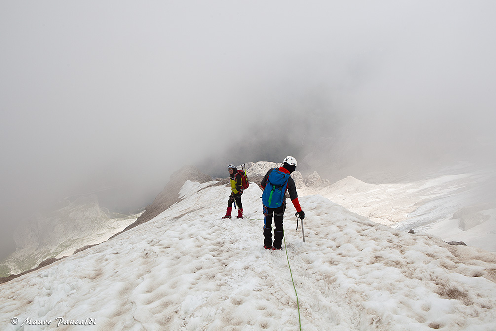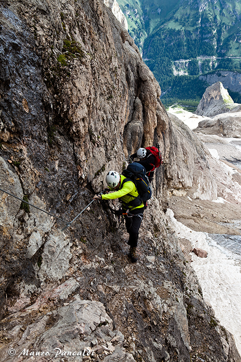 Sul tratto attrezzato della Via normale a Punta Penia.Sul tratto attrezzato della Via normale a Punta Penia.