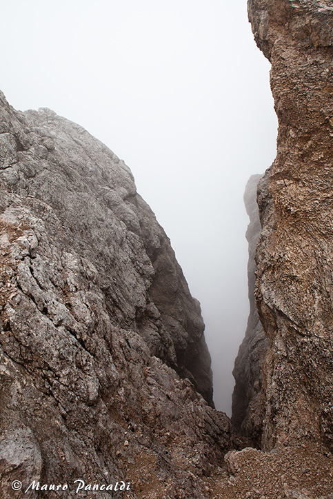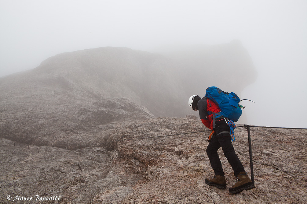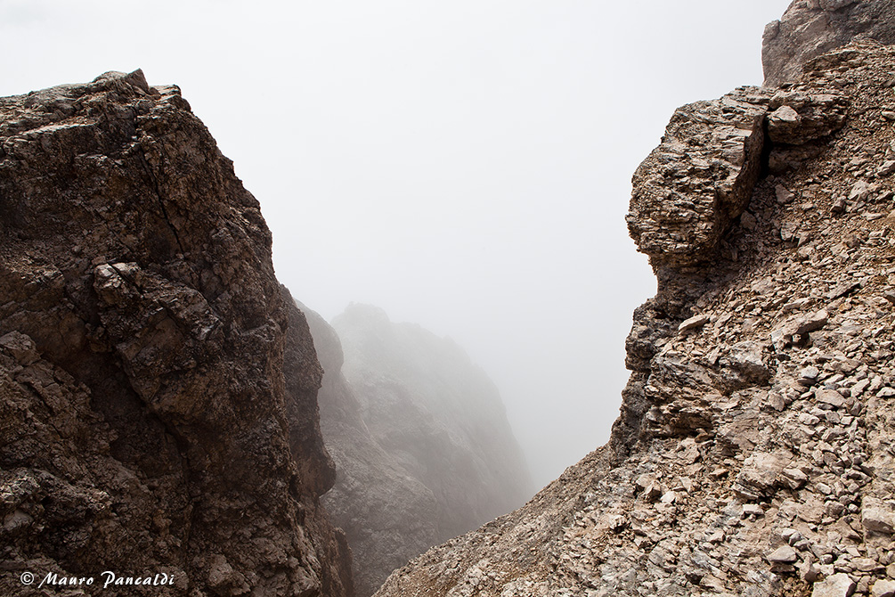 Scorcio nella nebbia lungo la Cresta Ovest della Marmolada..Scorcio nella nebbia lungo la Cresta Ovest della Marmolada..