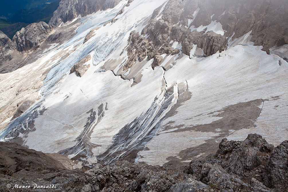 Affaccio sul Ghiacciaio della Marmolada dalla Schiena de Mul.Affaccio sul Ghiacciaio della Marmolada dalla Schiena de Mul.