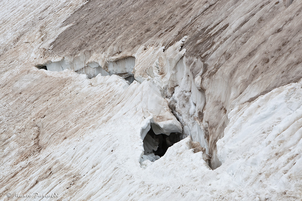Profondo crepaccio sul Ghiacciaio della Marmolada lungo la Via normale a Punta Penia.Profondo crepaccio sul Ghiacciaio della Marmolada lungo la Via normale a Punta Penia.