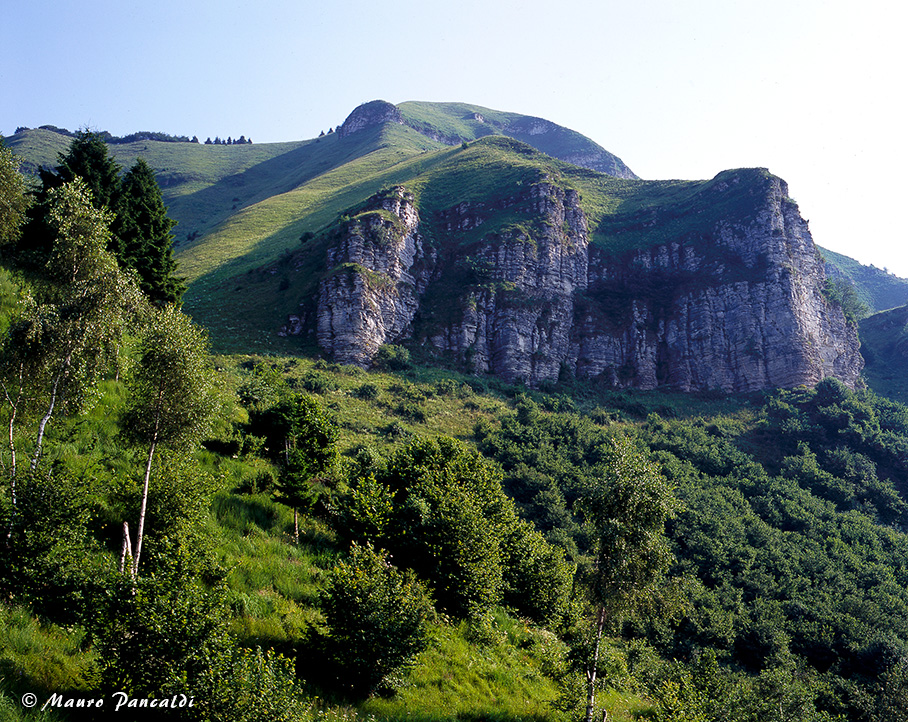 Profilo mattutino del Castello, la bellissima parete sotto Monte Santo, attraversata dallo “spericolato” Sentiero CAI Montebelluna.Profilo mattutino del Castello, la bellissima parete sotto Monte Santo, attraversata dallo “spericolato” Sentiero CAI Montebelluna.