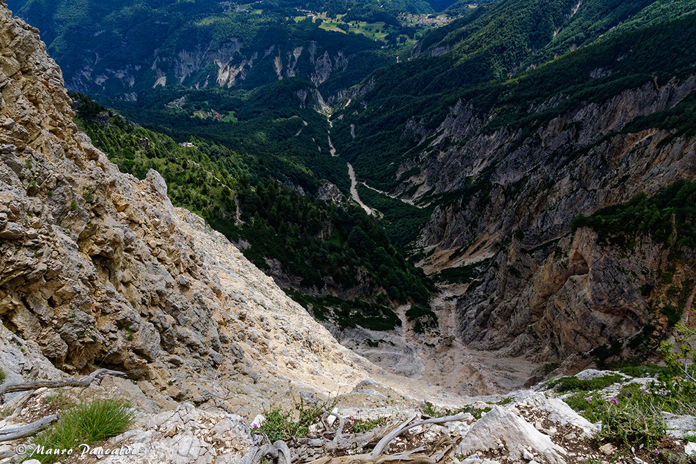 Vista sulla Val Rossa con gli spalti del Monte Spilech in basso e quelli del Becco di Filadonna in alto.Vista sulla Val Rossa con gli spalti del Monte Spilech in basso e quelli del Becco di Filadonna in alto.