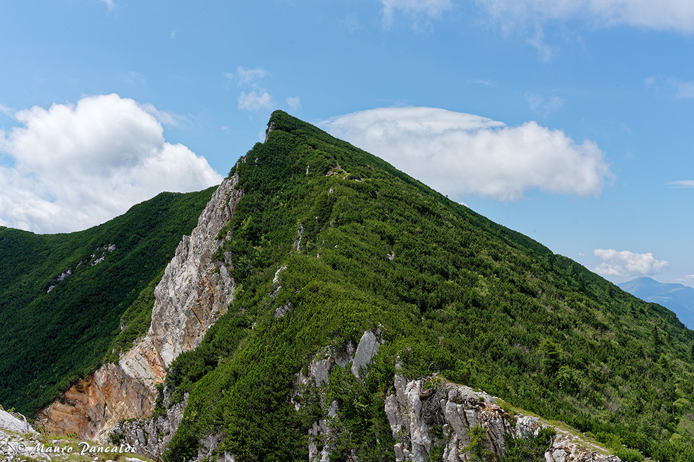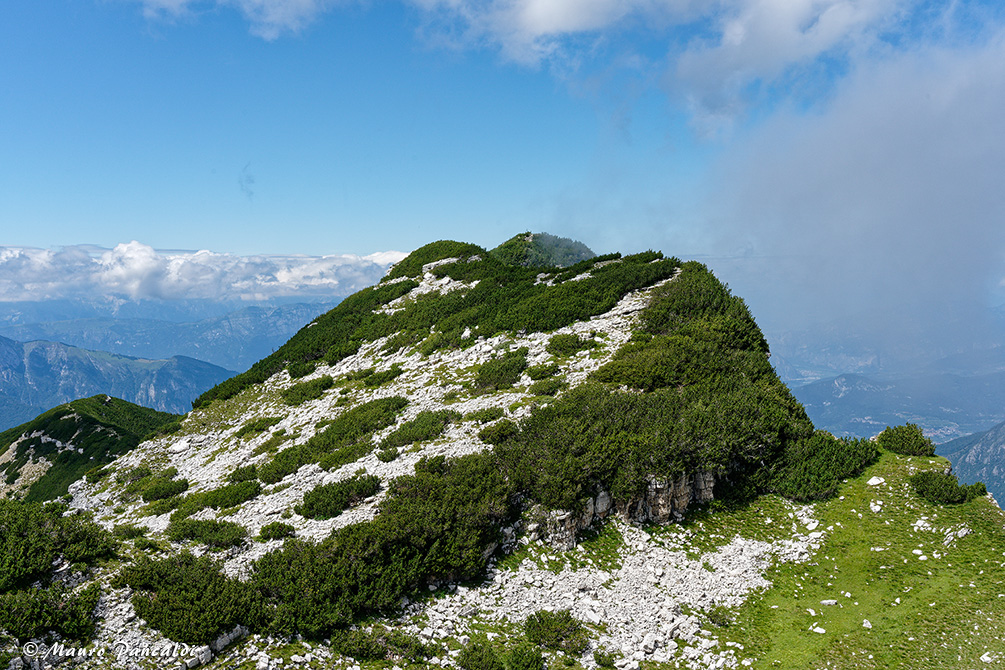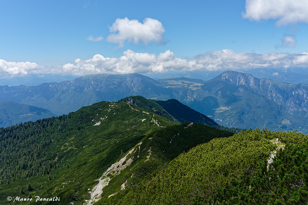La Cresta Nord-Ovest de la Vigolana ricoperta di mughi si allunga su Colle del Campigolet.La Cresta Nord-Ovest de la Vigolana ricoperta di mughi si allunga su Colle del Campigolet.