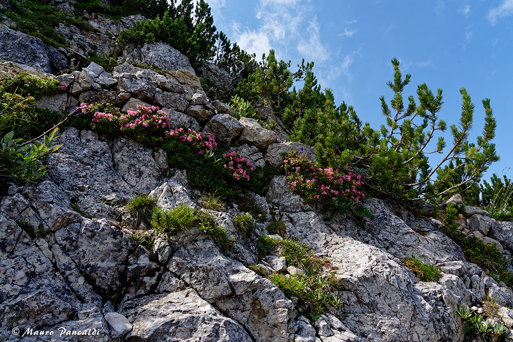 Fioritura di Rododendro rosso o Rosa delle Alpi lungo il sentiero per Monte Cornetto.Fioritura di Rododendro rosso o Rosa delle Alpi lungo il sentiero per Monte Cornetto.