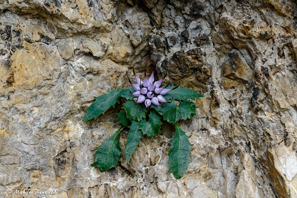 Sembra incredibile che dalla roccia possano sbocciare fiori tanto belli: Raponzolo di roccia o chiomoso (Physoplexis comosa L. Schur) al Sengio Alto.Sembra incredibile che dalla roccia possano sbocciare fiori tanto belli: Raponzolo di roccia o chiomoso (Physoplexis comosa L. Schur) al Sengio Alto.