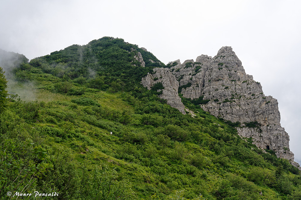 Sopra di noi si scopre l’aspra cresta rocciosa del Monte Cornetto.Sopra di noi si scopre l’aspra cresta rocciosa del Monte Cornetto.