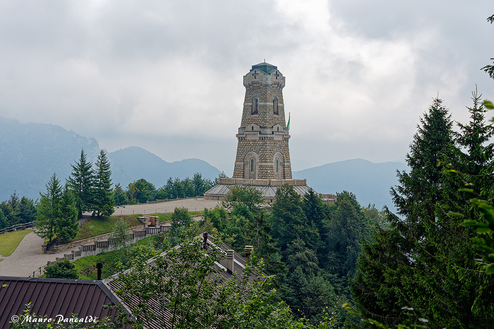 L’Ossario del Pasubio si alza come un faro sul Colle di Bellavista.L’Ossario del Pasubio si alza come un faro sul Colle di Bellavista.