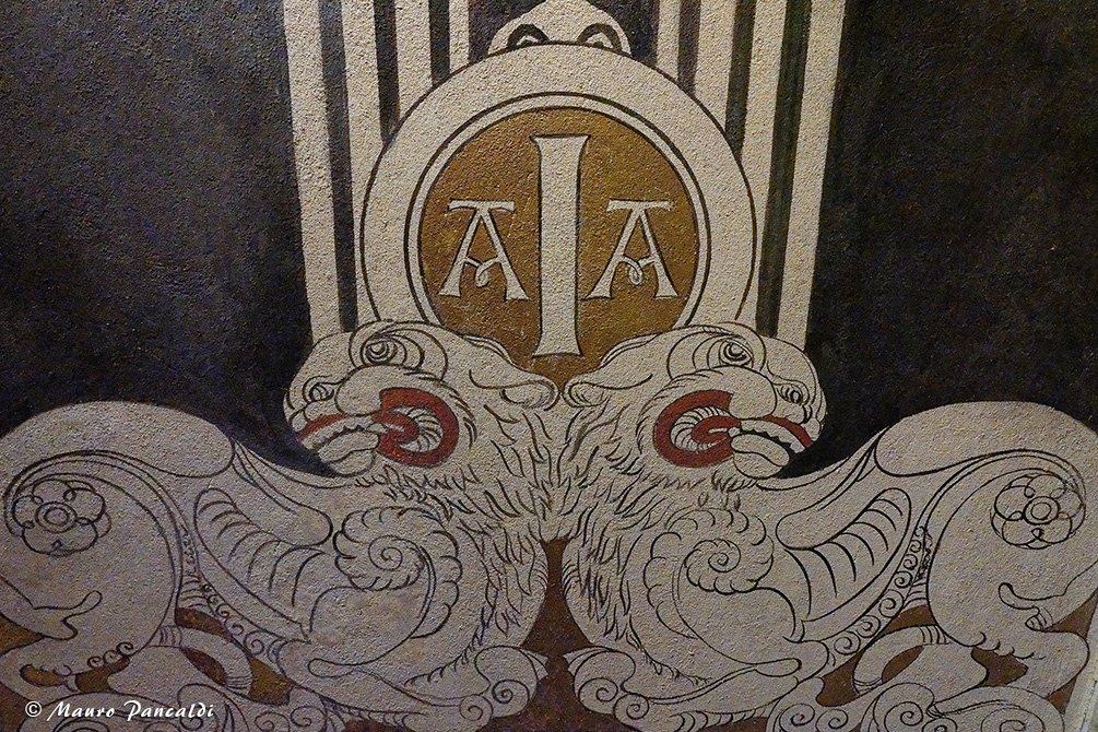 Particolare di affresco interno nel basamento dell’Ossario del Pasubio.Particolare di affresco interno nel basamento dell’Ossario del Pasubio.
