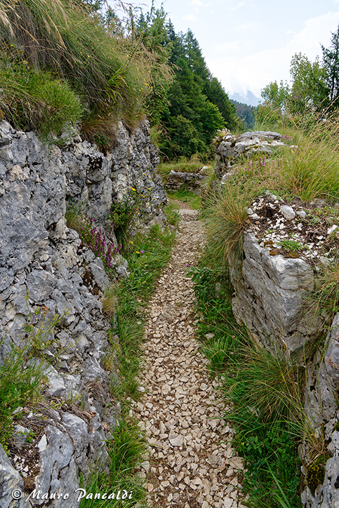 Trincea austriaca della Grande Guerra alla Forra del Lupo.Trincea austriaca della Grande Guerra alla Forra del Lupo.