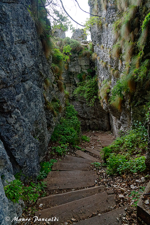Scorcio sul Sentiero della Forra del Lupo che sale da Serrada.Scorcio sul Sentiero della Forra del Lupo che sale da Serrada.