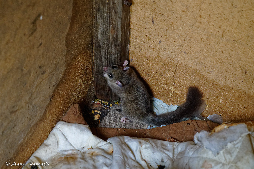 “Coabitazione forzata“ (incontro con un ghiro, Glis glis L., in un piccolo capanno di cacciatori durante un temporale, località Teze di Serrada).“Coabitazione forzata“ (incontro con un ghiro, Glis glis L., in un piccolo capanno di cacciatori durante un temporale, località Teze di Serrada).