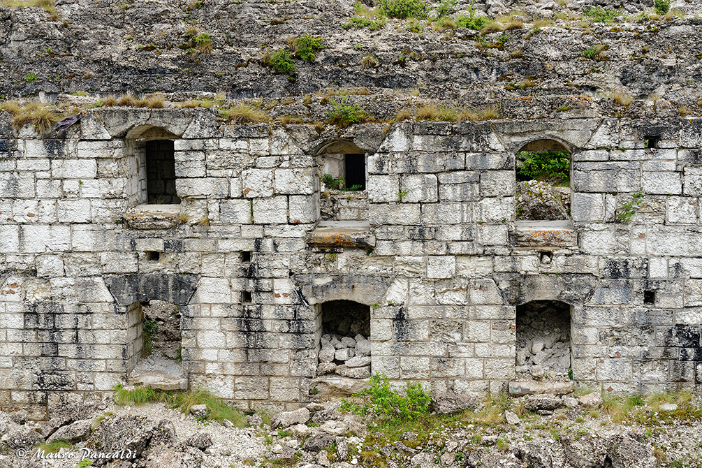 Particolare della facciata del Forte Dosso del Sommo, originariamente costruito su tre livelli.Particolare della facciata del Forte Dosso del Sommo, originariamente costruito su tre livelli.