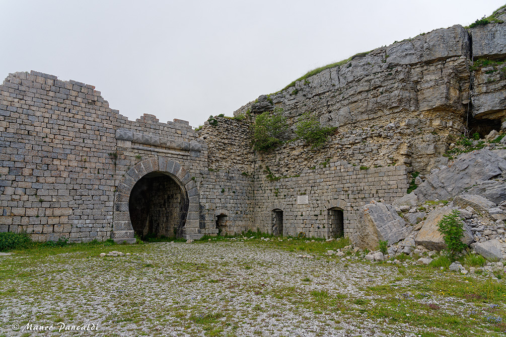 Interni del Forte Campomolon, quasi interamente scavato nella roccia della cima del monte omonimo.Interni del Forte Campomolon, quasi interamente scavato nella roccia della cima del monte omonimo.