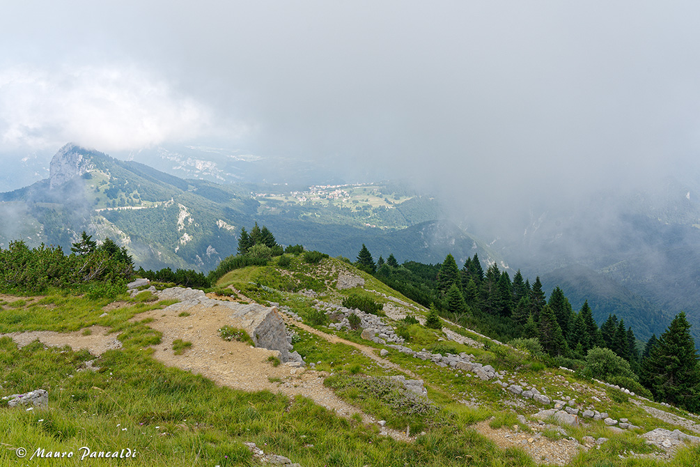 Vista tra le nuvole dalla cima del Monte Campomolon.Vista tra le nuvole dalla cima del Monte Campomolon.