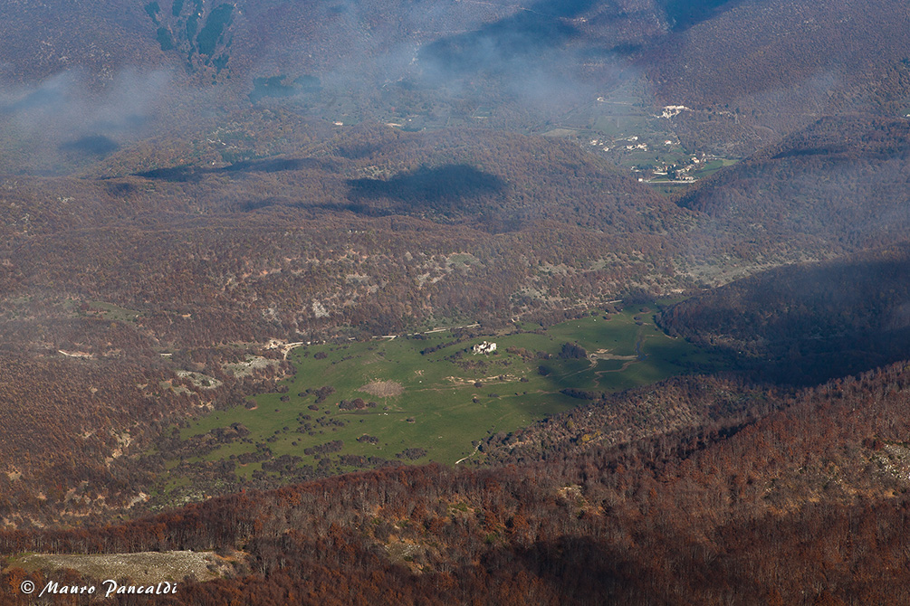 Dalla Cresta Est di Colle della Fungara vista sul vasto Piano di Cornino.Dalla Cresta Est di Colle della Fungara vista sul vasto Piano di Cornino.