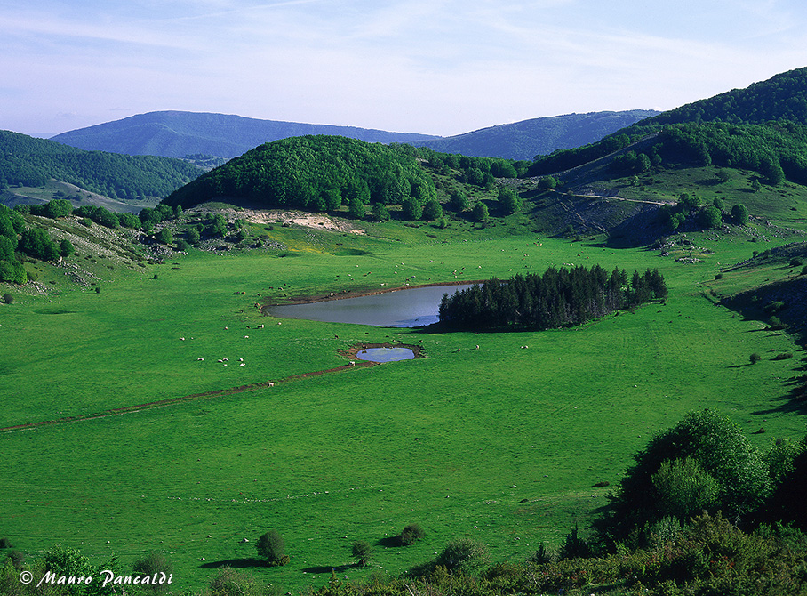 Il tentacolare Lago di Rascino e il circolare Lago di Cornino, visti dal Monte Torrecane.Il tentacolare Lago di Rascino e il circolare Lago di Cornino, visti dal Monte Torrecane.