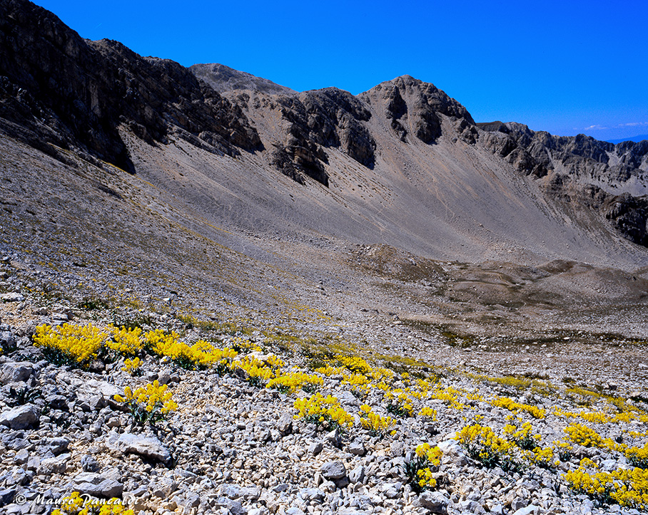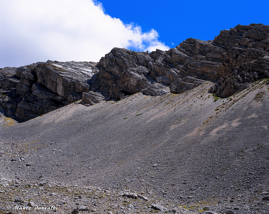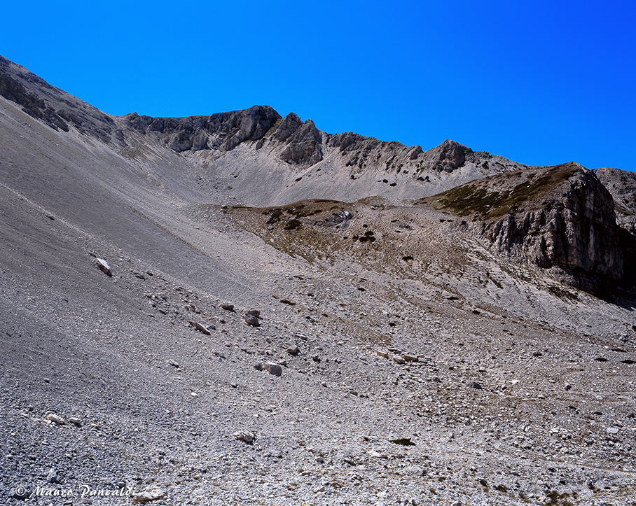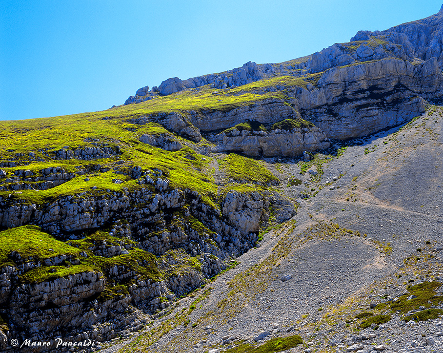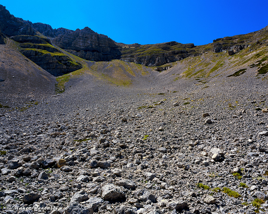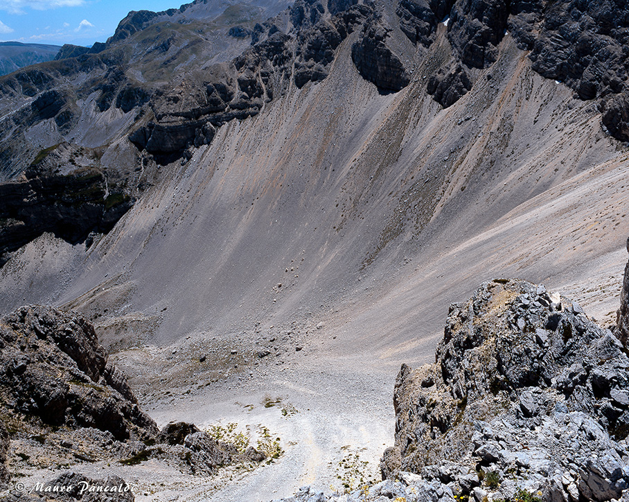 Il vasto ghiaione nel Canalone di Rava Palazzo sopra Capo di Teve.Il vasto ghiaione nel Canalone di Rava Palazzo sopra Capo di Teve.