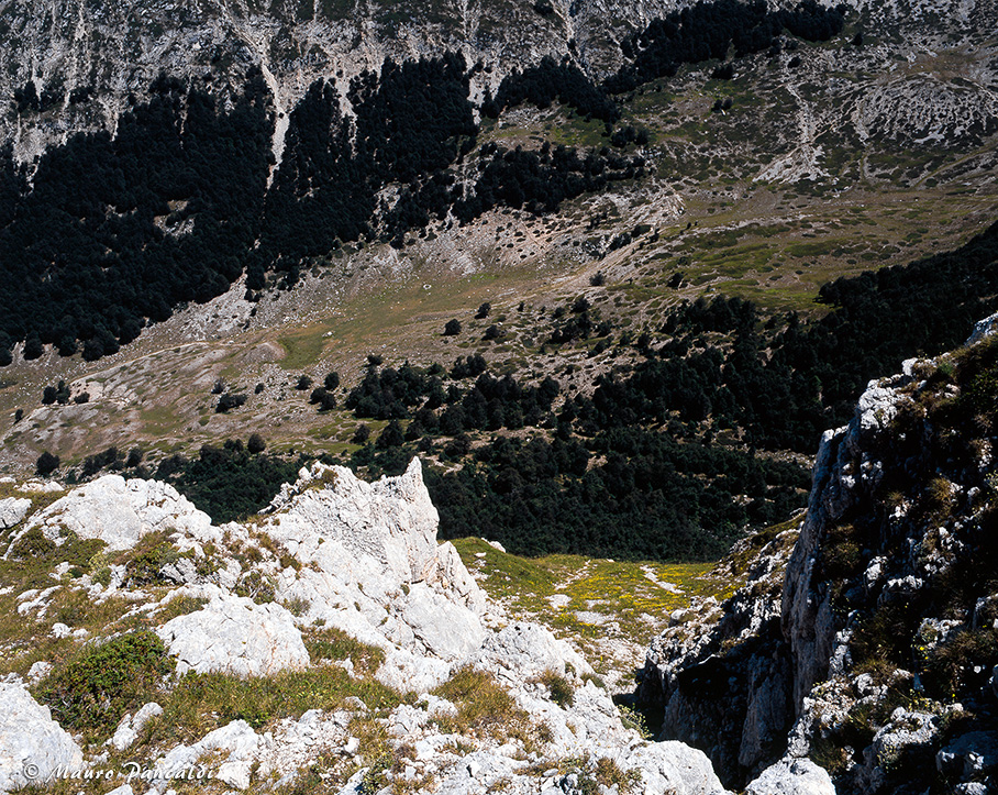 Gli aspri pilastri che sottendono il versante orientale di Cimata di Rava Palazzo.Gli aspri pilastri che sottendono il versante orientale di Cimata di Rava Palazzo.