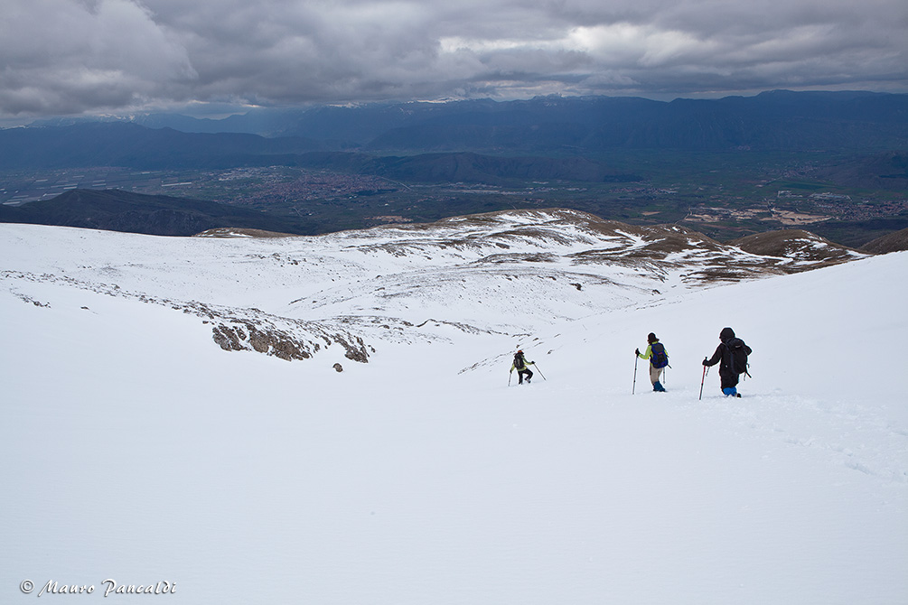 Inizio della discesa nel solco centrale del Vallone Incacchiato.Inizio della discesa nel solco centrale del Vallone Incacchiato.