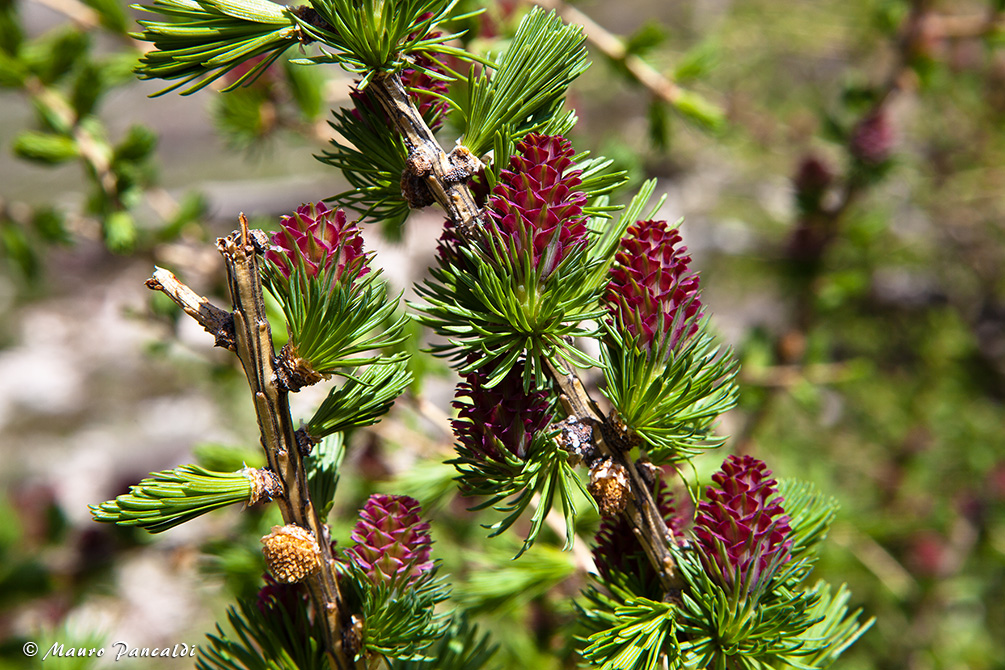 Fioritura di Larice comune (Larix decidua Mill.) in Valle Lama.Fioritura di Larice comune (Larix decidua Mill.) in Valle Lama.