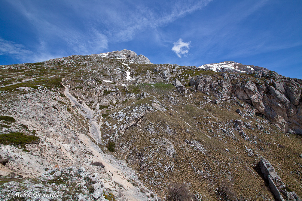Vista sulla Cresta Sud-occidentale del Velino a monte della Grotta di San Benedetto.Vista sulla Cresta Sud-occidentale del Velino a monte della Grotta di San Benedetto.