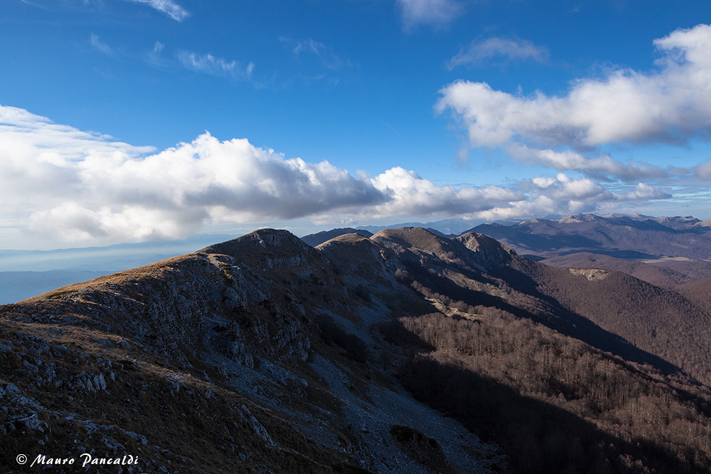 La cresta che dal San Nicola si sviluppa verso ovest (Monte Panico sullo sfondo).La cresta che dal San Nicola si sviluppa verso ovest (Monte Panico sullo sfondo).