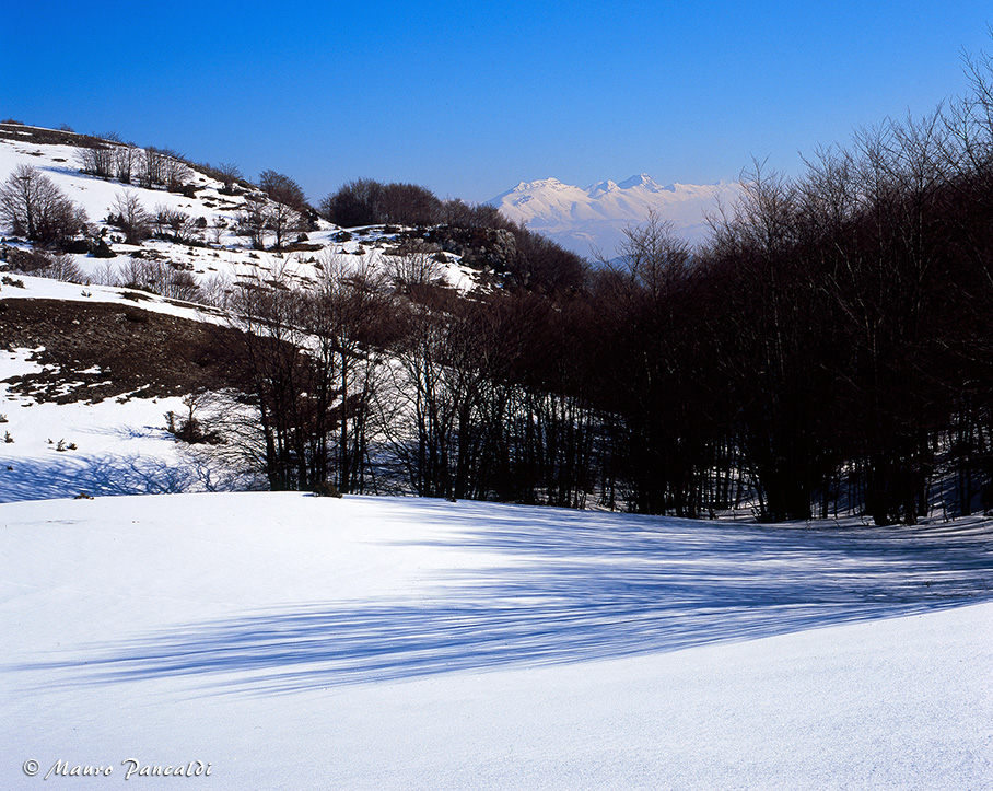 La Valle Lunga sotto un candido mantello di neve, sullo sfondo si scorge Monte Calvo.La Valle Lunga sotto un candido mantello di neve, sullo sfondo si scorge Monte Calvo.