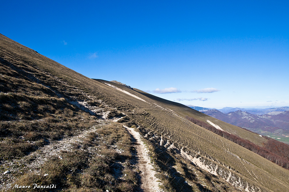 Vista a valle lungo il Traverso Nord del Monte Calvo.Vista a valle lungo il Traverso Nord del Monte Calvo.