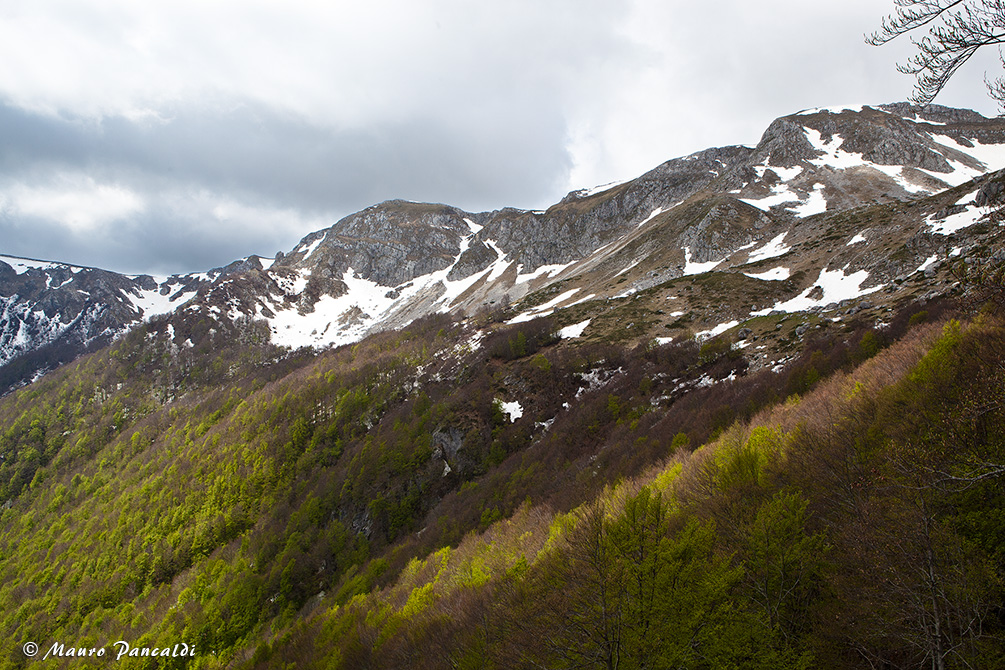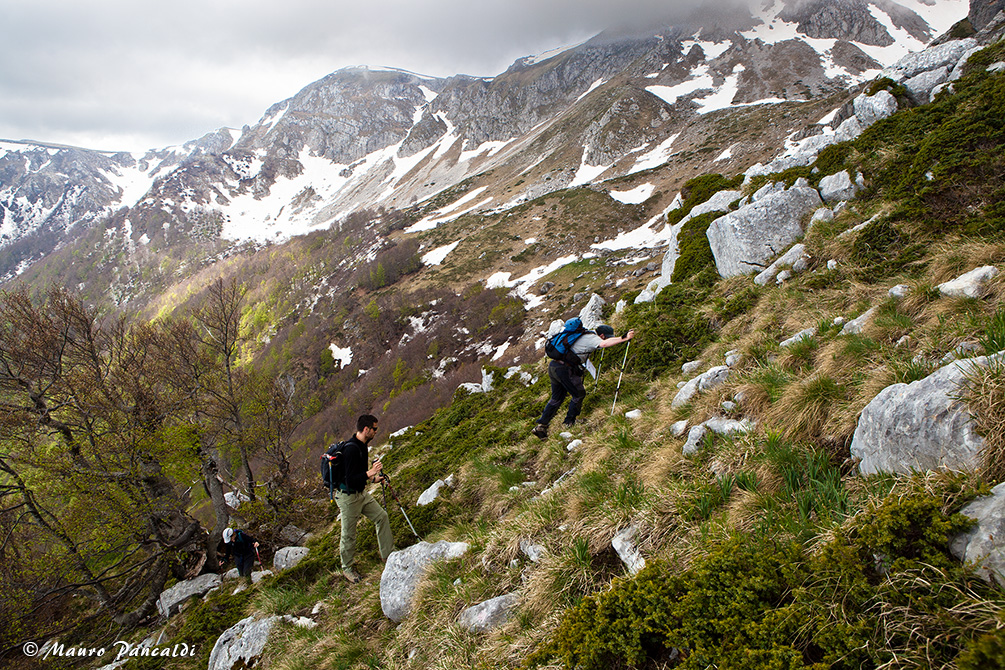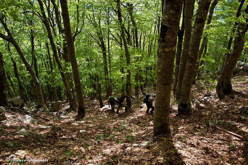 Nella ripida faggeta che si rimonta per guadagnare la Cresta Nord di Cima a Mare.Nella ripida faggeta che si rimonta per guadagnare la Cresta Nord di Cima a Mare.