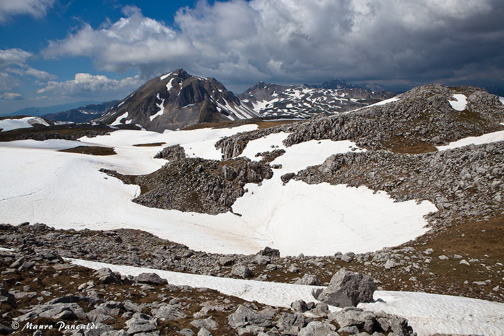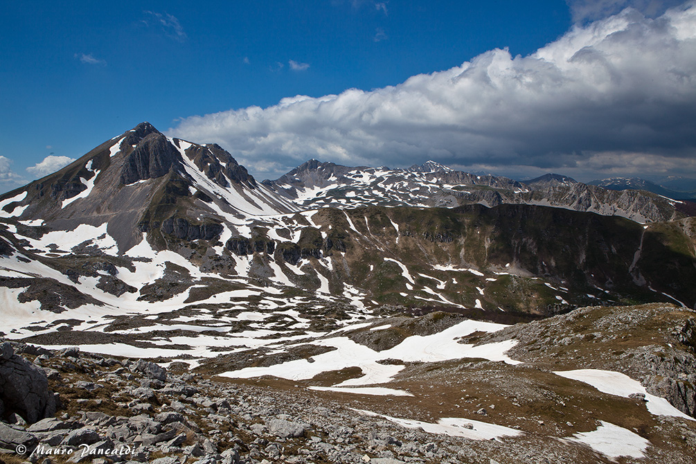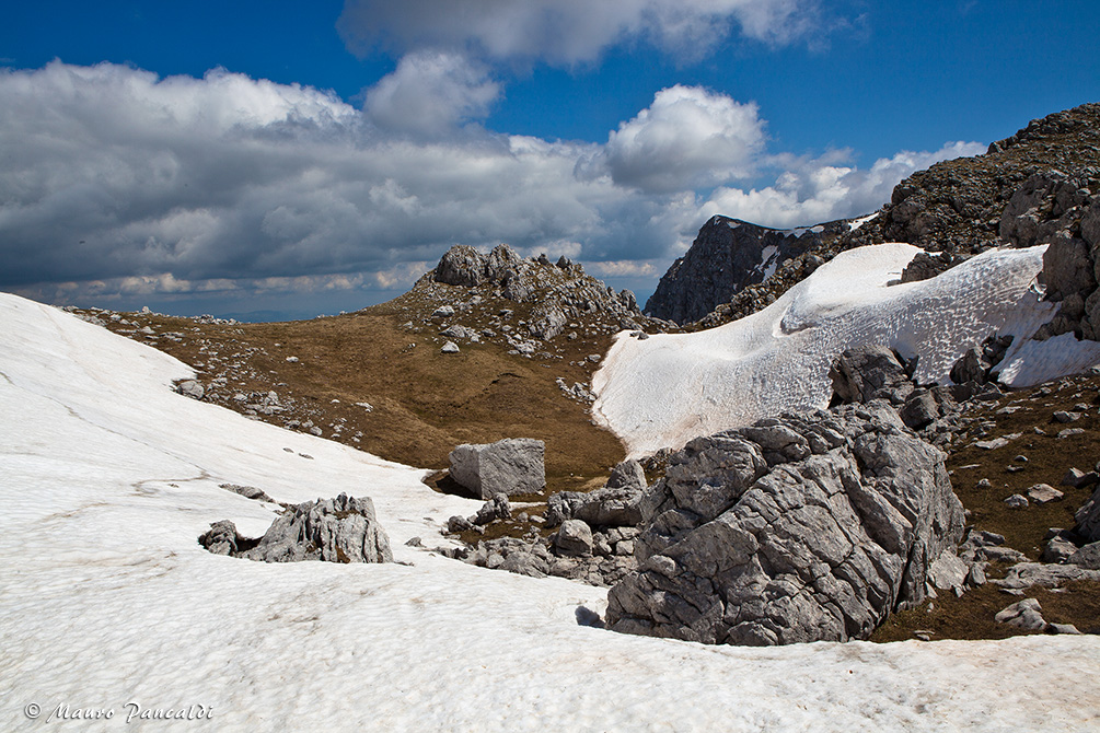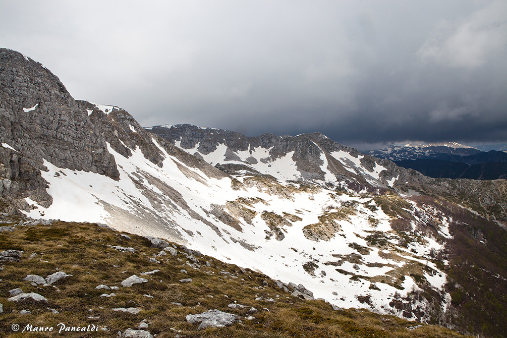 Affacio sul vasto circo glaciale racchiuso fra Monte a Mare e la Metuccia, versante orientale.Affacio sul vasto circo glaciale racchiuso fra Monte a Mare e la Metuccia, versante orientale.