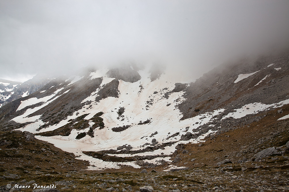 Piccolo circo glaciale sul Versante Nord di Coste dell’Alatre.Piccolo circo glaciale sul Versante Nord di Coste dell’Alatre.