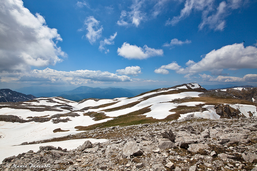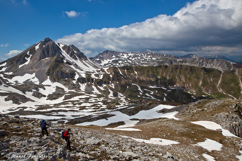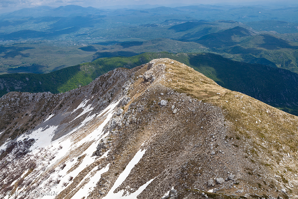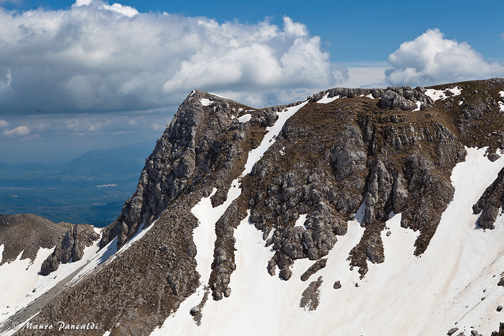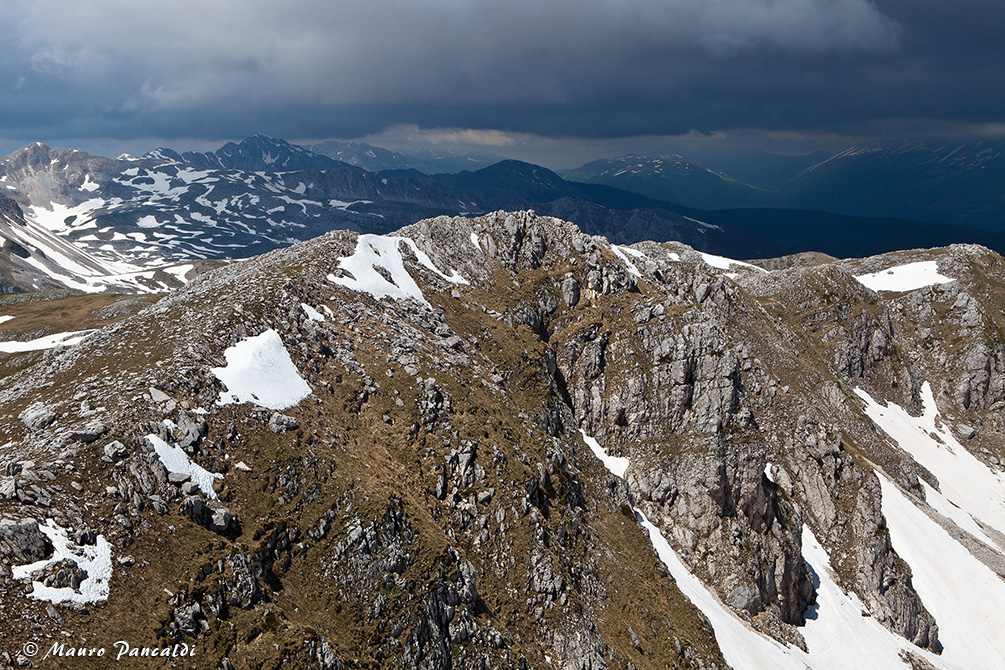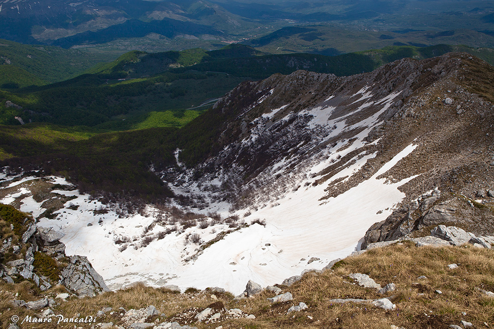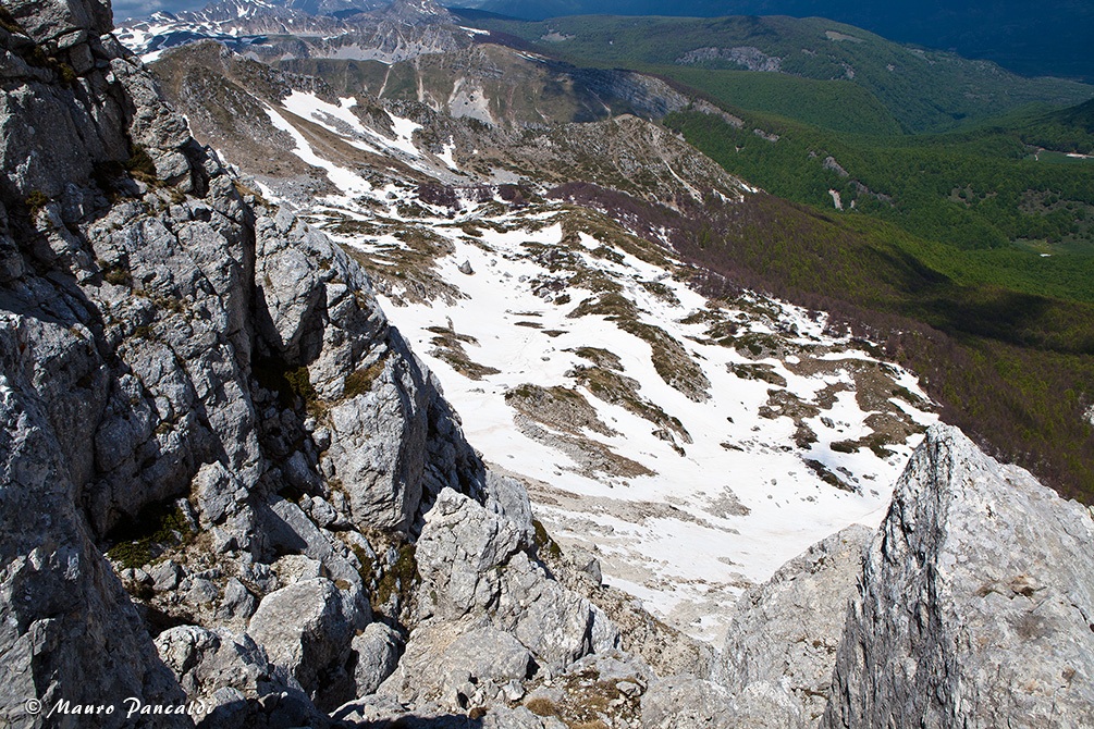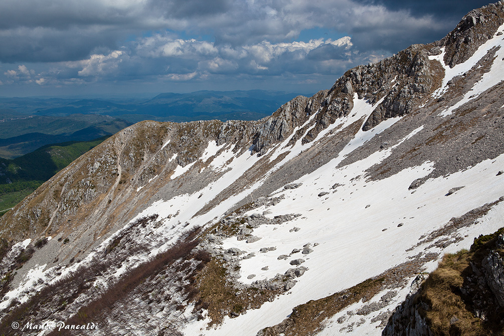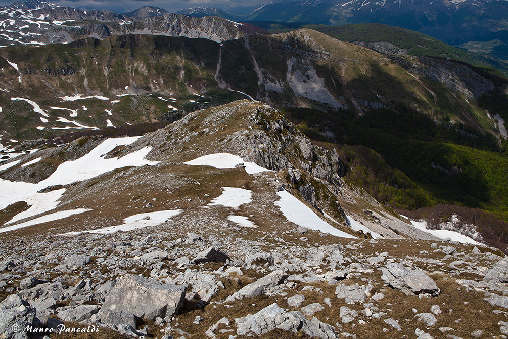 Sul filo della Cresta Nord di Cima a Mare, sullo sfondo la valle di Pizzone.Sul filo della Cresta Nord di Cima a Mare, sullo sfondo la valle di Pizzone.