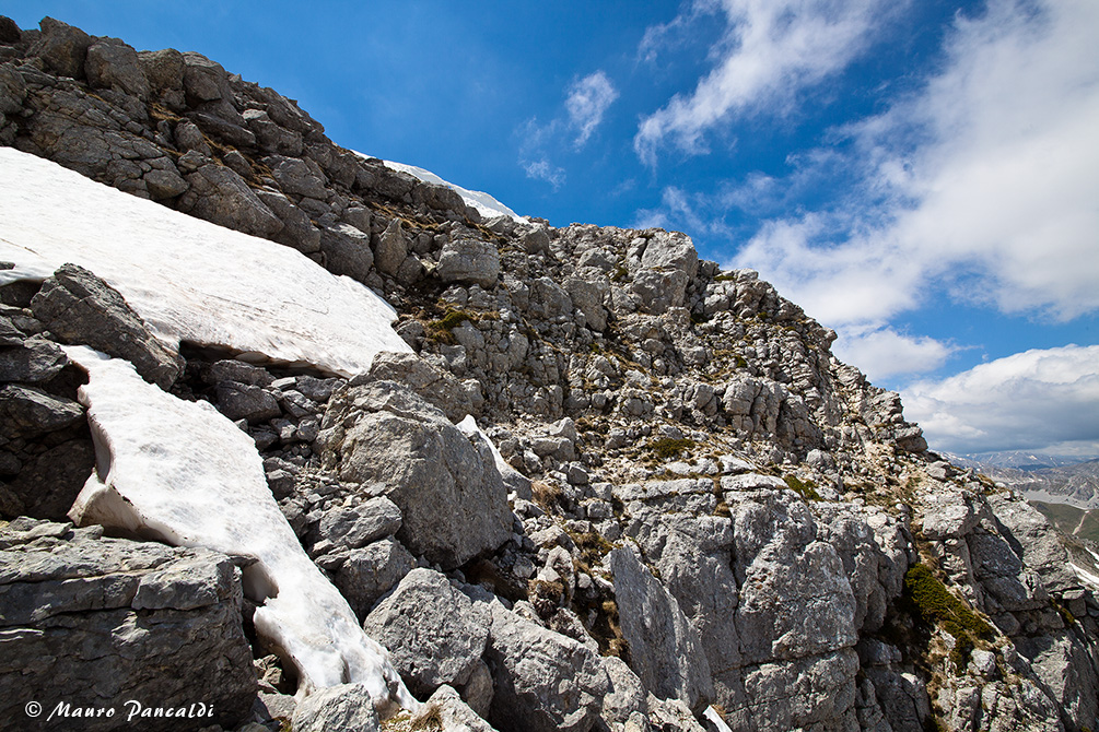 Sulla sella di giunzione fra la creste di Cima a Mare e Monte a Mare.Sulla sella di giunzione fra la creste di Cima a Mare e Monte a Mare.