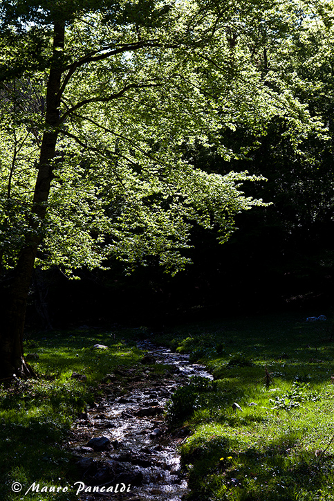 Sul fondo della Valle Pagana poco prima che il sentiero entri nella faggeta.Sul fondo della Valle Pagana poco prima che il sentiero entri nella faggeta.