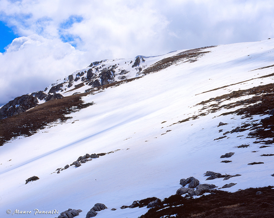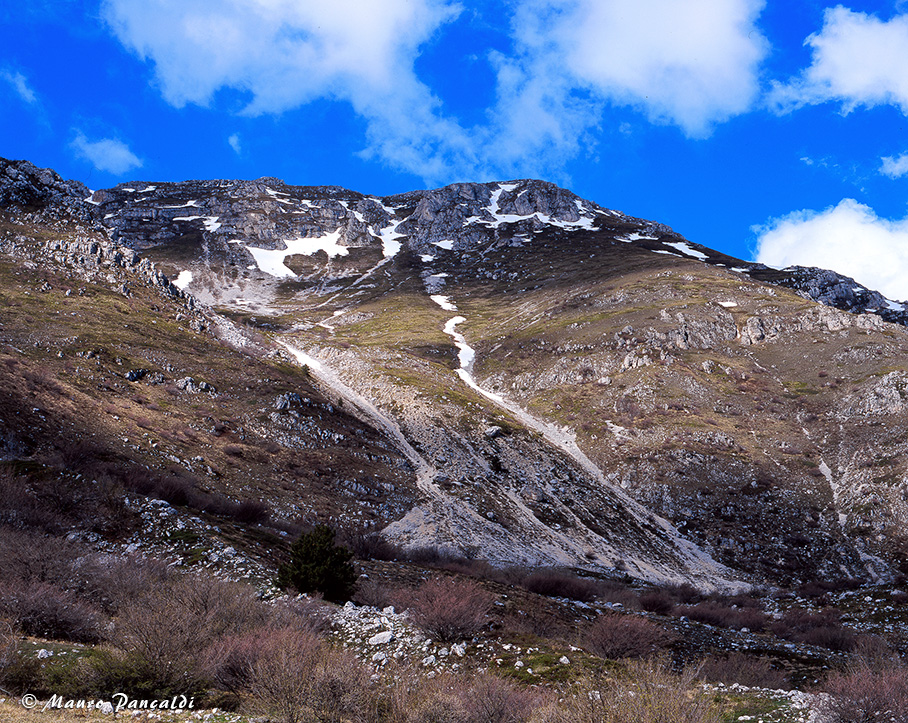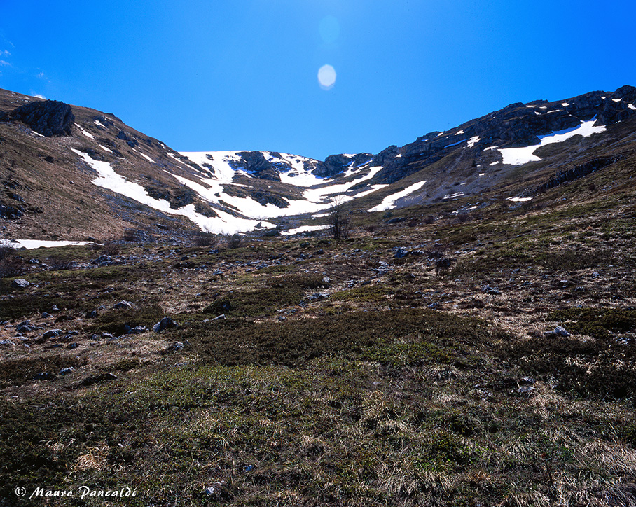 Ultime lingue di neve primaverile nel Vallone di Fossa Grande.Ultime lingue di neve primaverile nel Vallone di Fossa Grande.