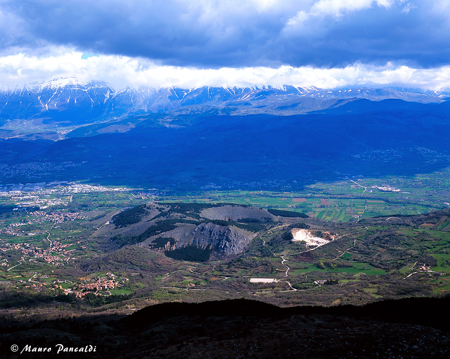 La magnifica vista sulla Valle dell’Aterno dal Monte Ocre.La magnifica vista sulla Valle dell’Aterno dal Monte Ocre.