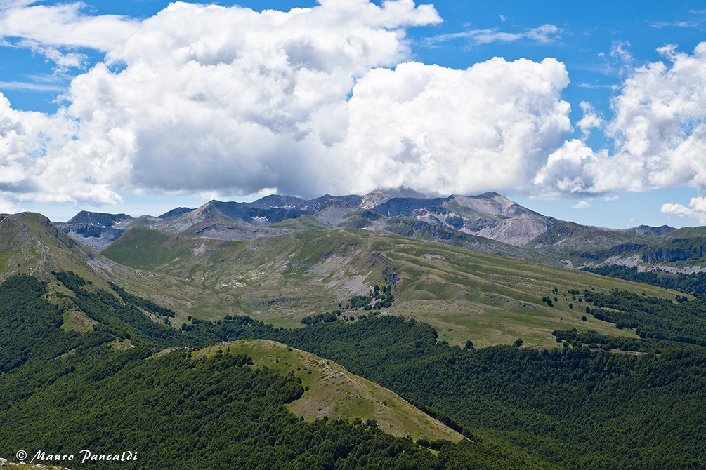 La cresta dei monti Puzzillo e Cornacchia (sulla dx) ripresa da Coppa Agapito.La cresta dei monti Puzzillo e Cornacchia (sulla dx) ripresa da Coppa Agapito.