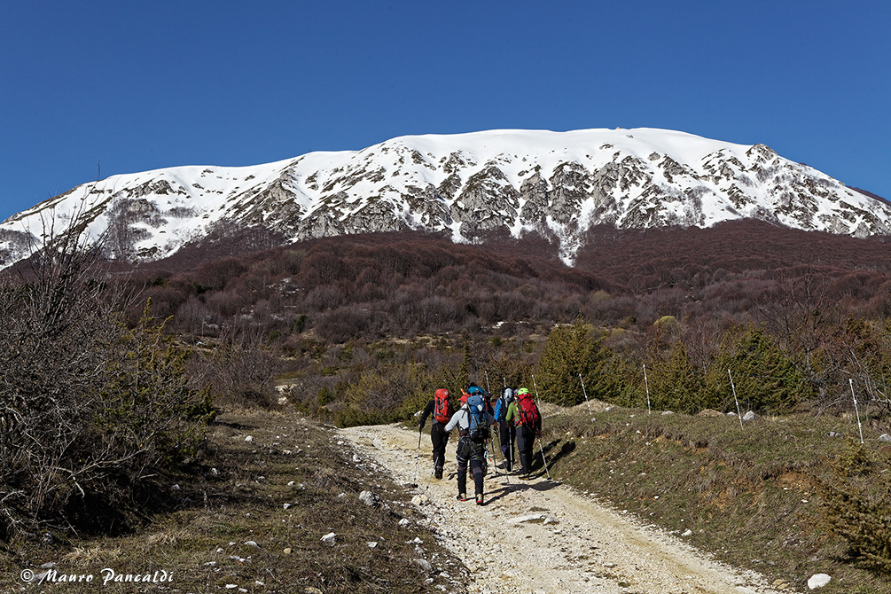 “Andiam, andiam, andiamo a camminar…“ (sulla sterrata verso Bosco le Cese, sullo sfondo il Monte Rotondo).“Andiam, andiam, andiamo a camminar…“ (sulla sterrata verso Bosco le Cese, sullo sfondo il Monte Rotondo).