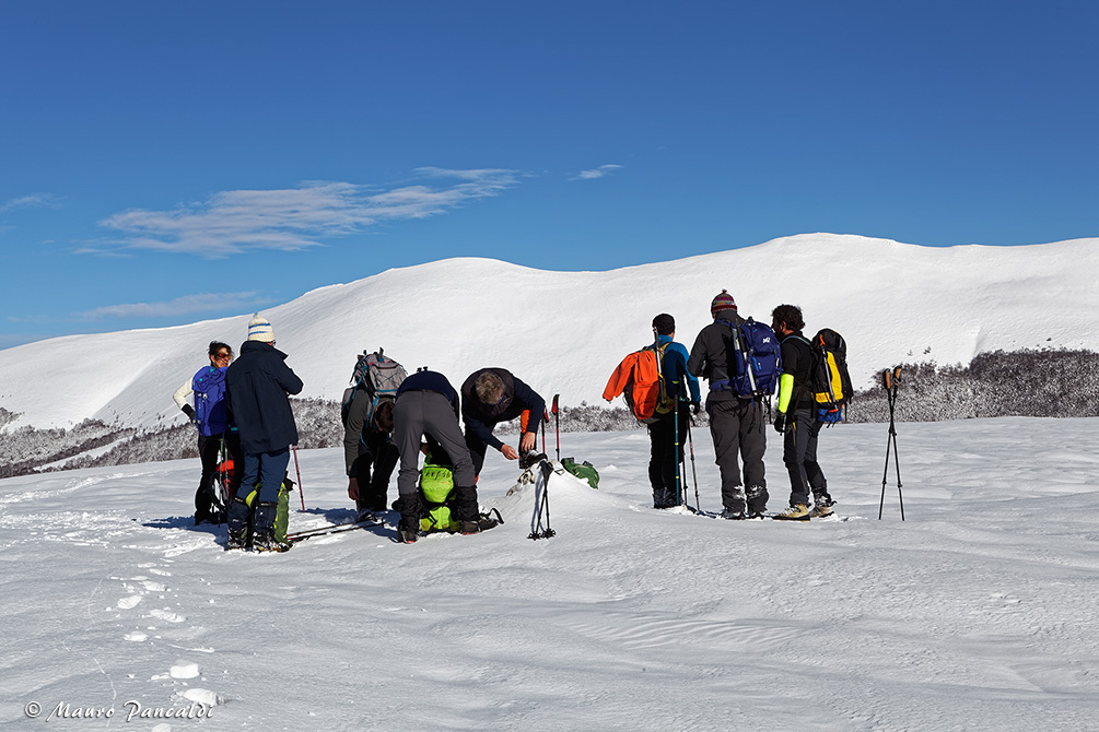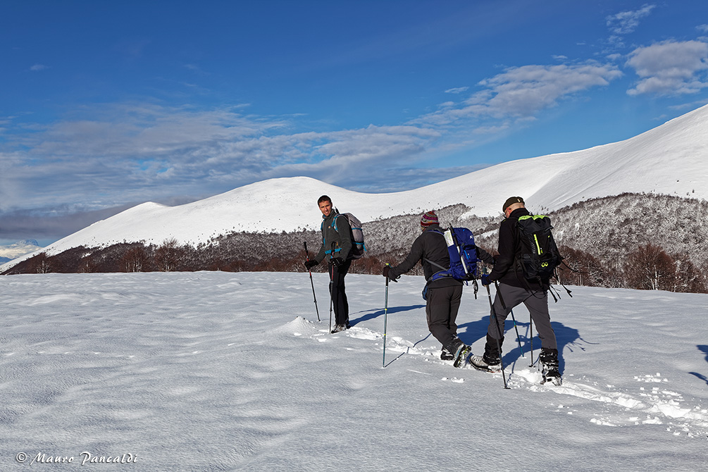 In fila indiana verso il gobbone sommitale di Macchia di Rose.In fila indiana verso il gobbone sommitale di Macchia di Rose.