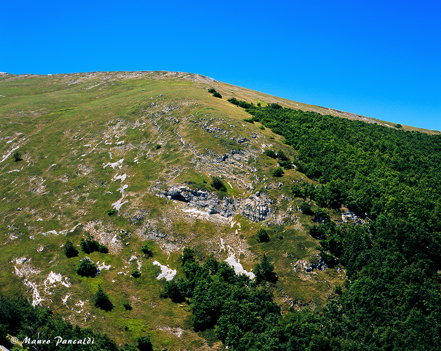 Un verde mantello di faggi ricopre la Valle Franchitta.Un verde mantello di faggi ricopre la Valle Franchitta.