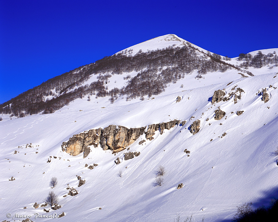 Il manto di neve alla testata del Fosso di Camporotondo “firmato” da uno scialpinista.Il manto di neve alla testata del Fosso di Camporotondo “firmato” da uno scialpinista.