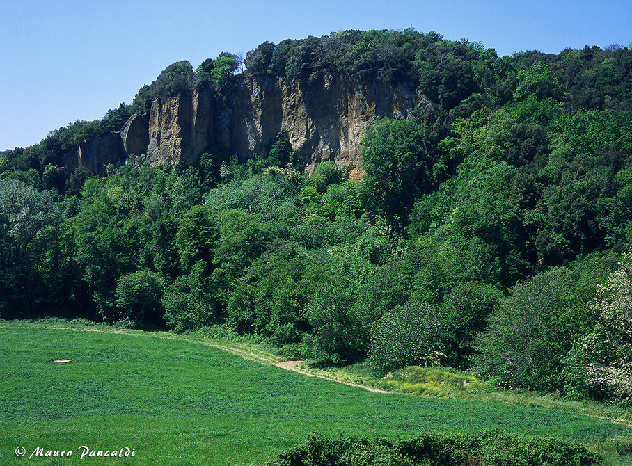 Il muro di contenimento all’entrata del Ponto Sodo (una galleria scavata dagli etruschi per deviare il corso delle acque).Il muro di contenimento all’entrata del Ponto Sodo (una galleria scavata dagli etruschi per deviare il corso delle acque).