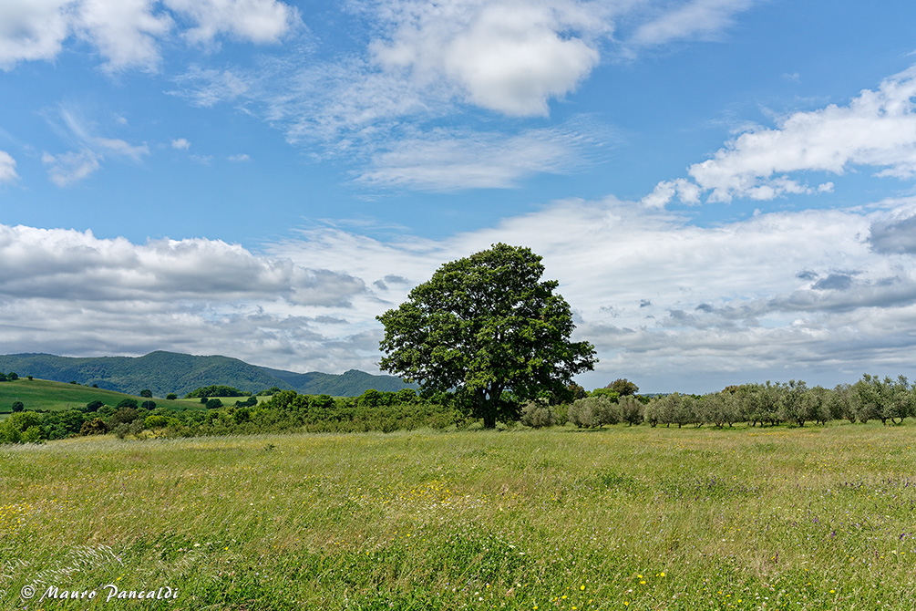 Una solitaria quercia si staglia contro il cielo (località le Pozze).Una solitaria quercia si staglia contro il cielo (località le Pozze).
